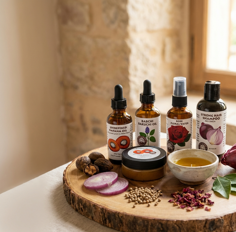 We choose thoughtfully sourced botanicals, process them with care to preserve what nature offers, and keep formulas focused on what your skin and hair actually need.